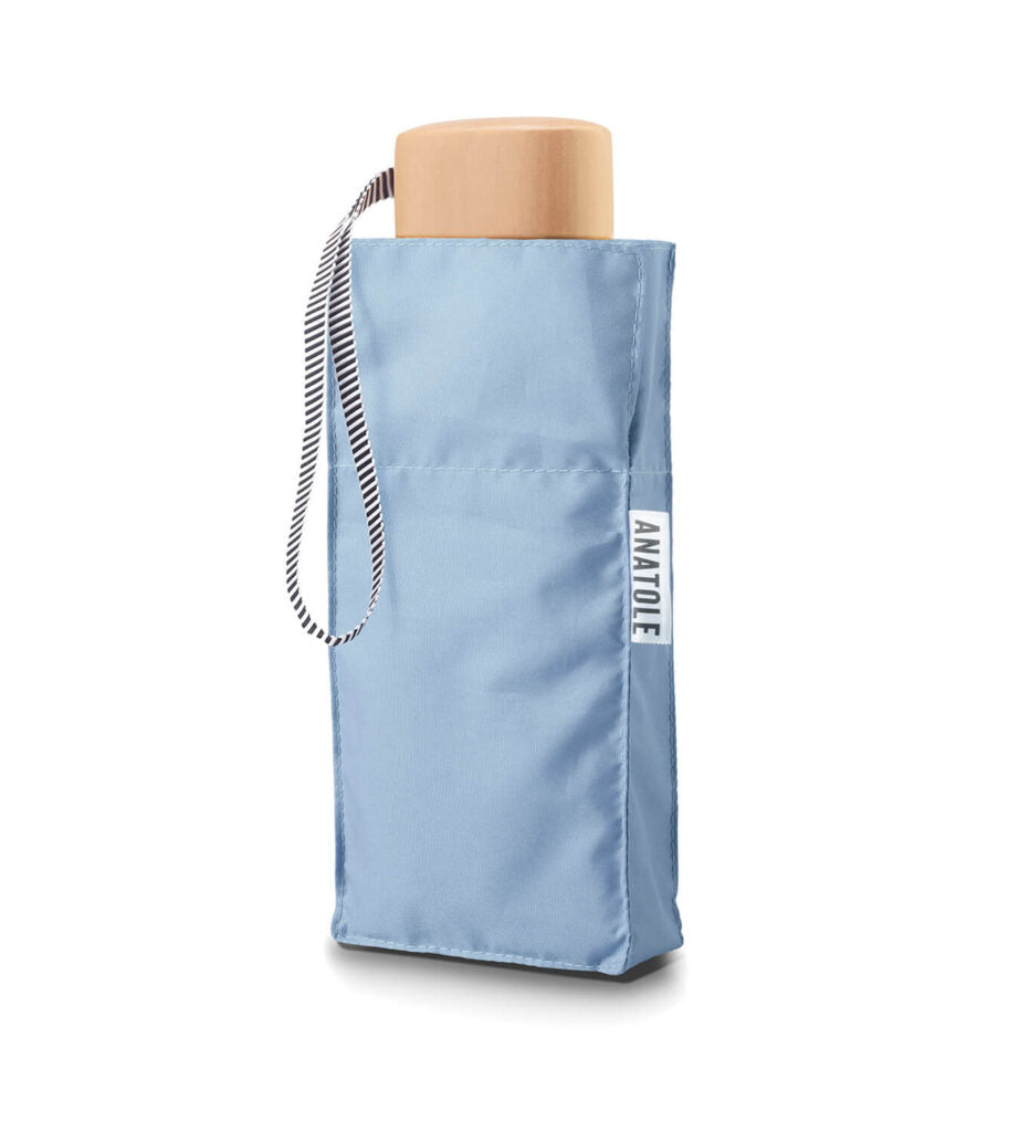 Your new rainy day essential, the 'Astrid' micro-umbrella by Anatole in Skye Blue. A mini brolly that's not much bigger than your mobile phone. Ultra lightweight & compact yet strong, this pocket sized umbrella uses the latest technology to produce an unbeatable size/resistance ratio.