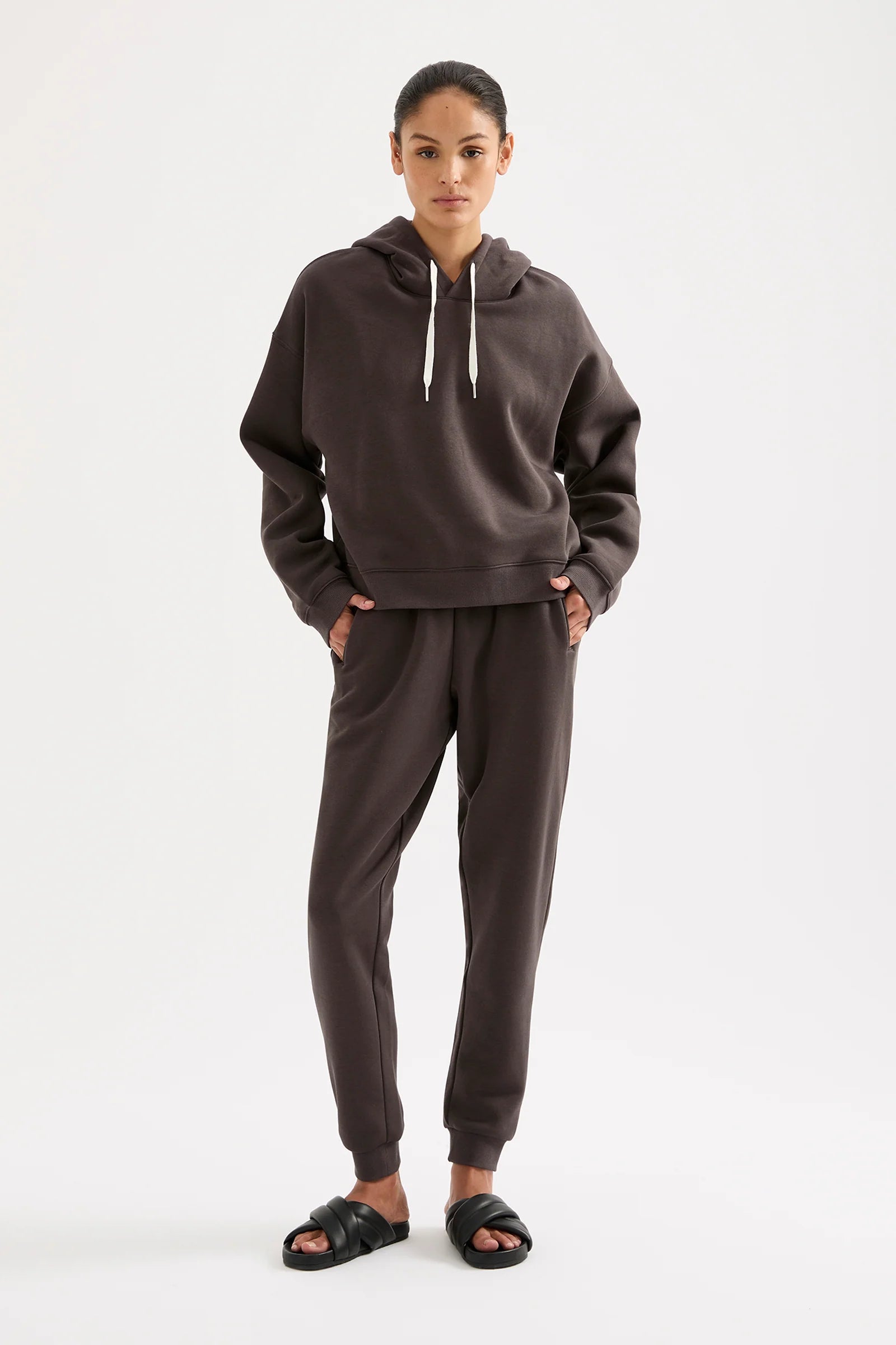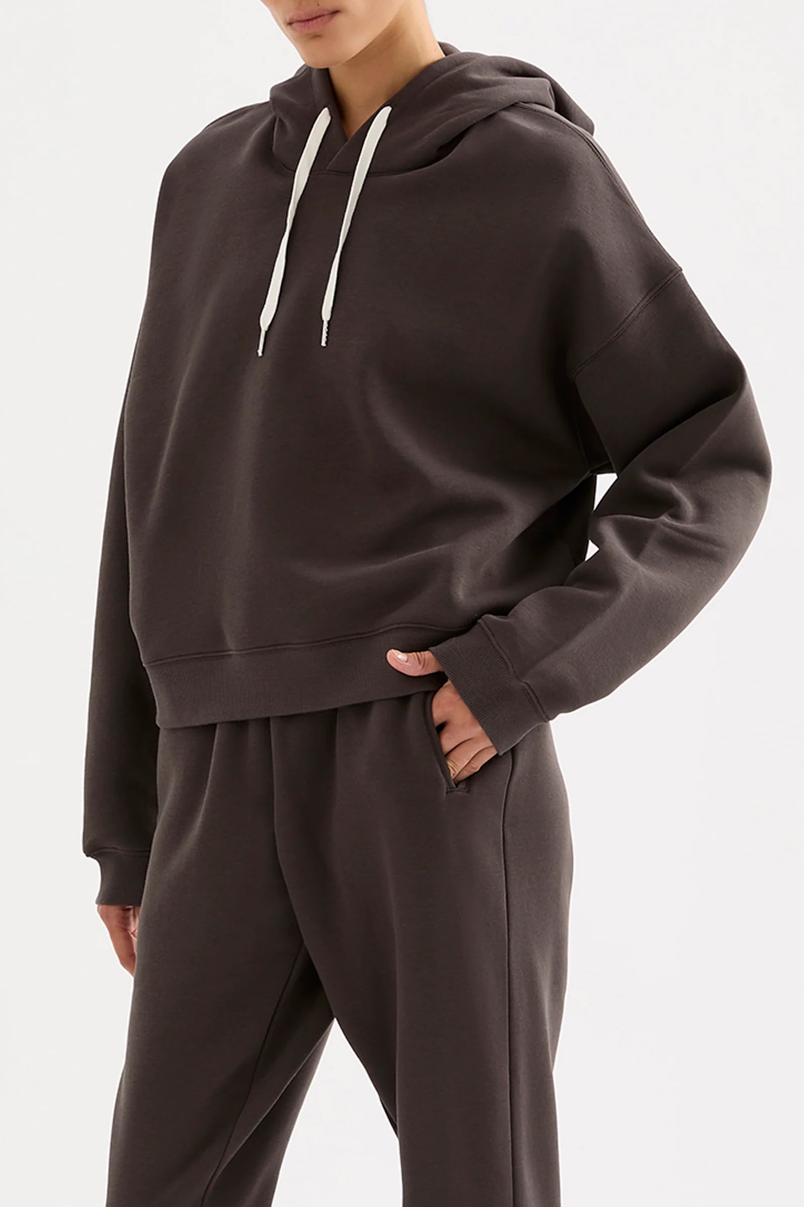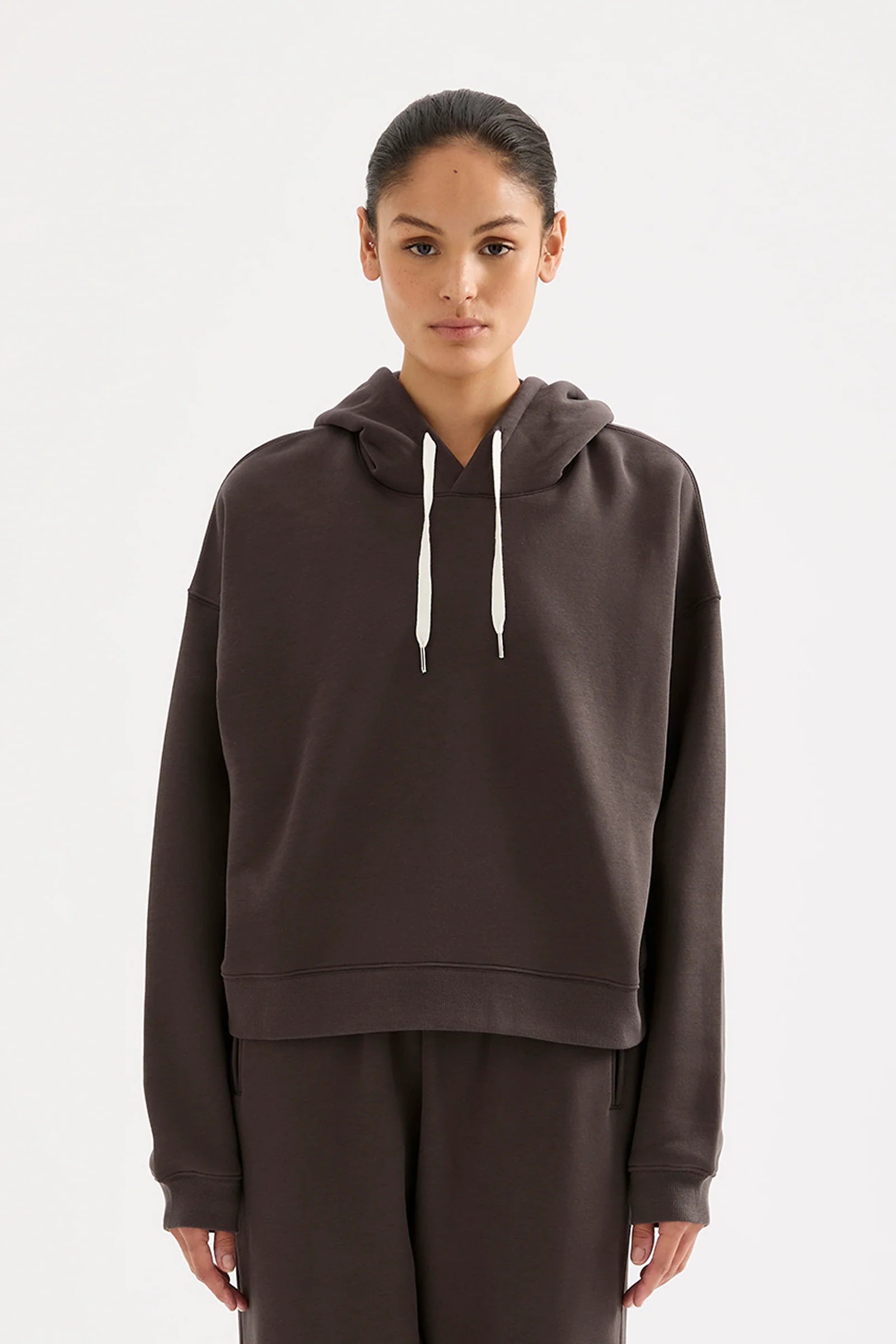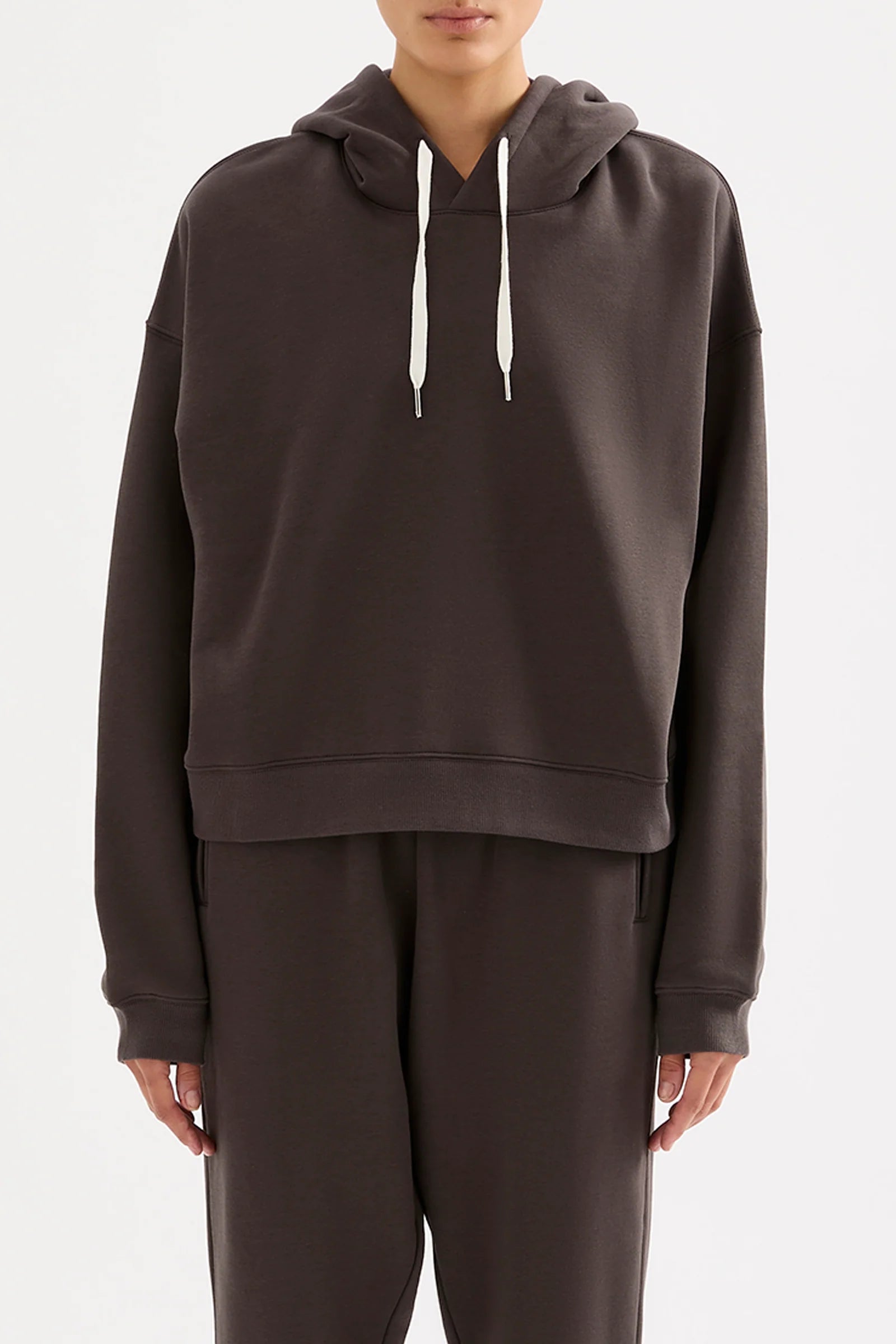 The Carter Classic Hoodie is made in our signature fleece, washed down for an ultra soft hand feel. The silhouette is oversized with drop shoulders and long sleeves. Features include a fully lined hood with draw cord, ribbed cuffs and hem.