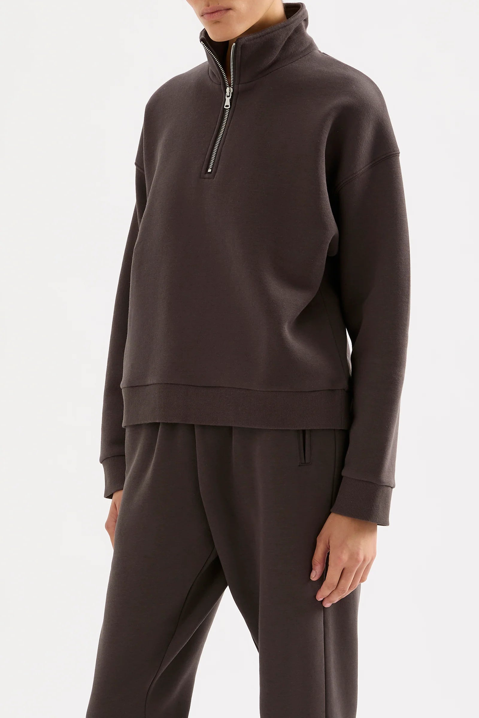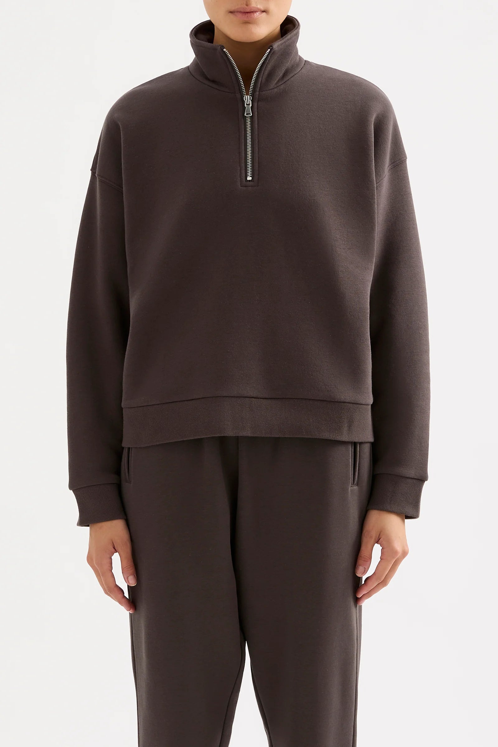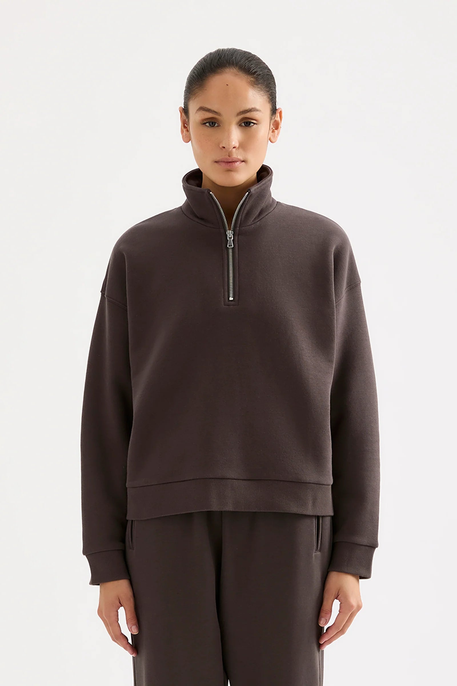 The Carter Classic Zip Front Sweat is made in our signature fleece, washed down for an ultra soft hand feel. The silhouette is relaxed with a slightly boxy fit and length finishing on the hips. Features include a metal half zip on the neck with a ribbed collar, cuffs and hem.