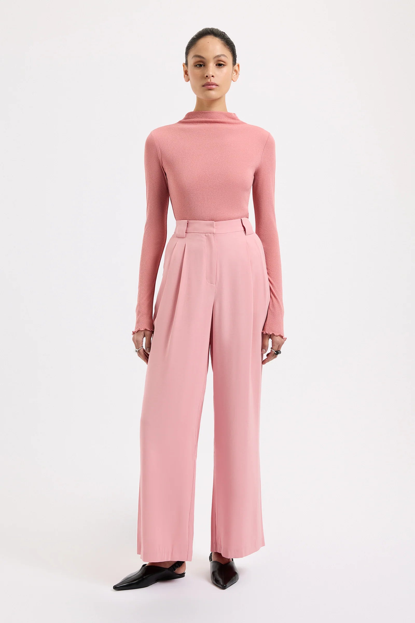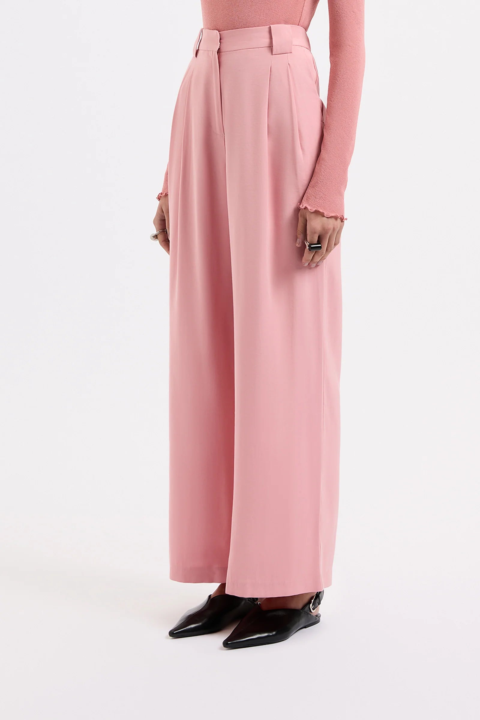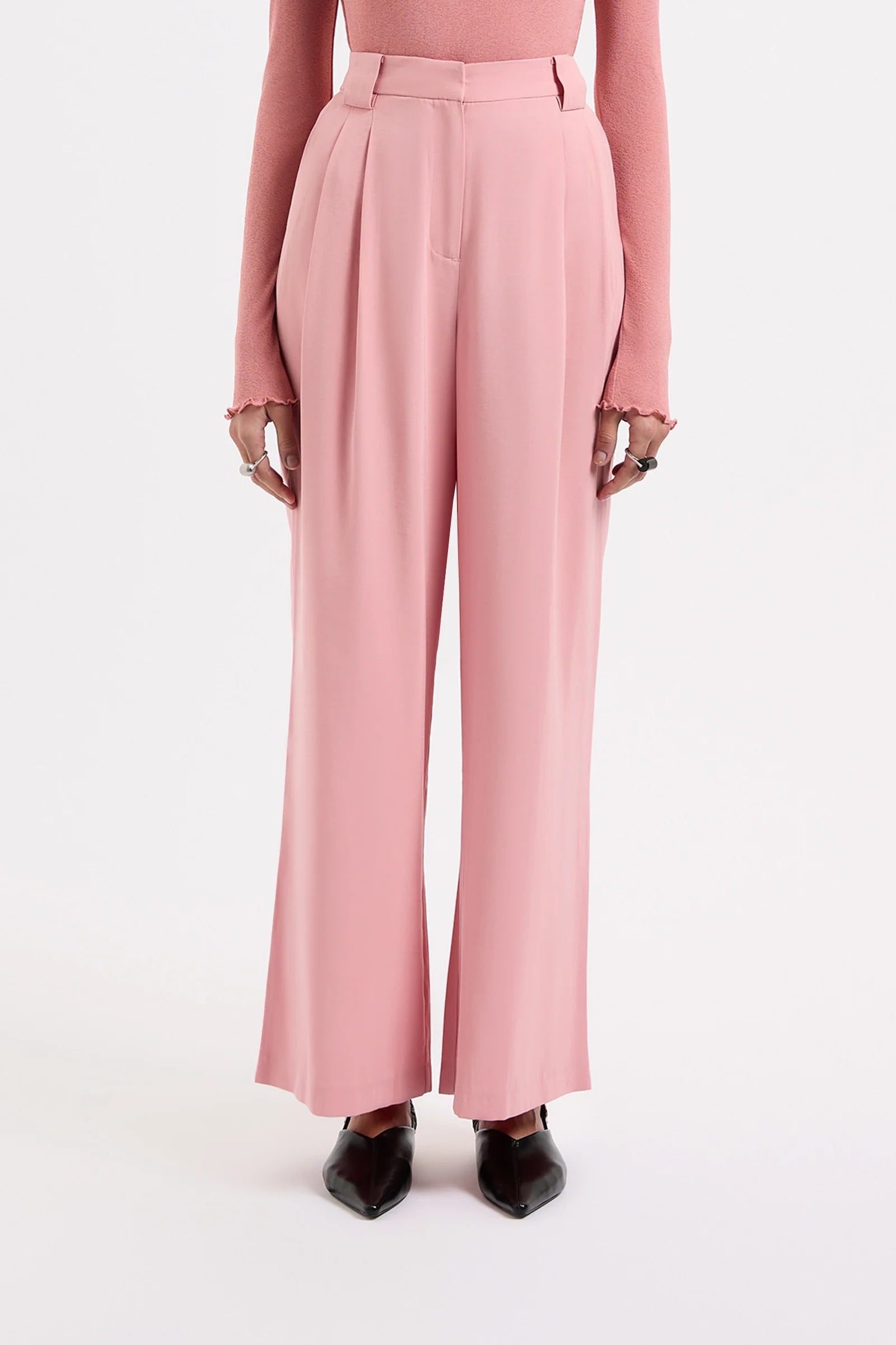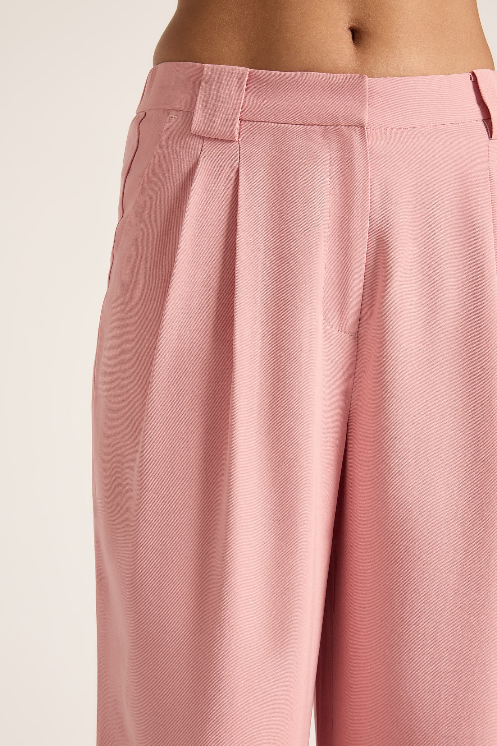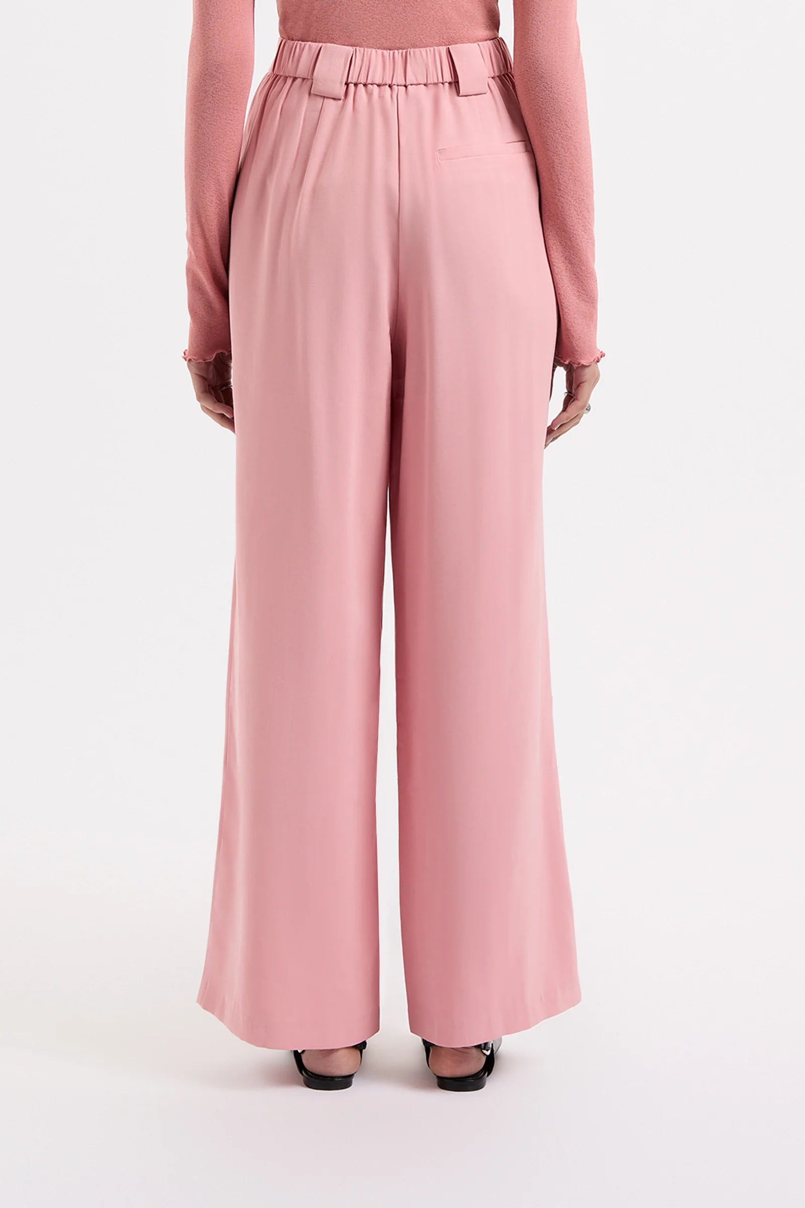 The Petra Tailored Pant is made in a lightweight rayon fabrication that has a twill texture and soft hand feel. The silhouette is a classic high-rise with wide tailored leg finishing full length. Features include front pleats at waist, elasticated back waistband & concealed button and trouser hook closure.