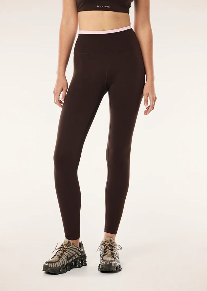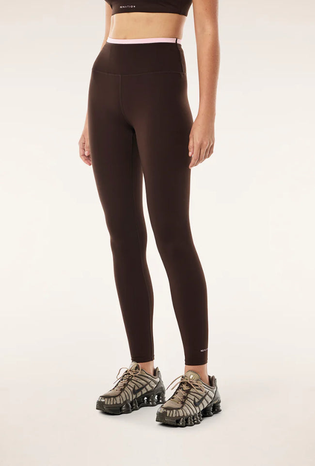 The Vita Full Length Legging in Espresso/Pink is made from our signature Active Lite fabrication. Our most lightweight active fabric, this high rise full length legging features a contrast detail at the waistband. Perfect for training or running, this hyper-soft active legging will feel like a second skin.