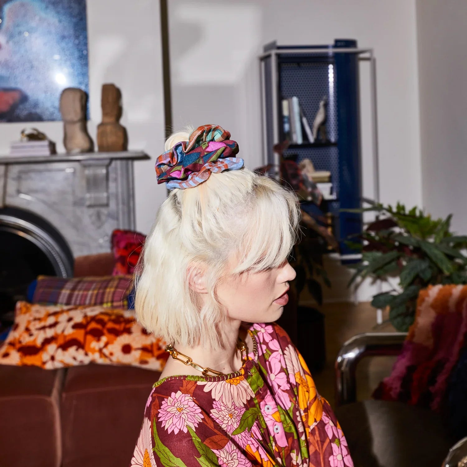 “Taking advantage of every last scrap of our beautiful printed textiles, this scrunchie set combines the best seasonal florals and geometric motifs. A throughline of rich colour makes them easy to pair with our apparel range.” – Phoebe’s Style Notes