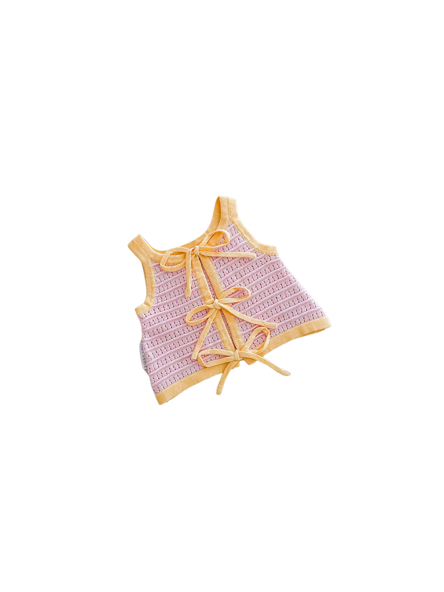 Freya and Butter coloured reversible tie up singlet in our eyelet knit style. Functional ties on the back for easy on/off. Mix and match with items from our August + Clementine Summer Collections.