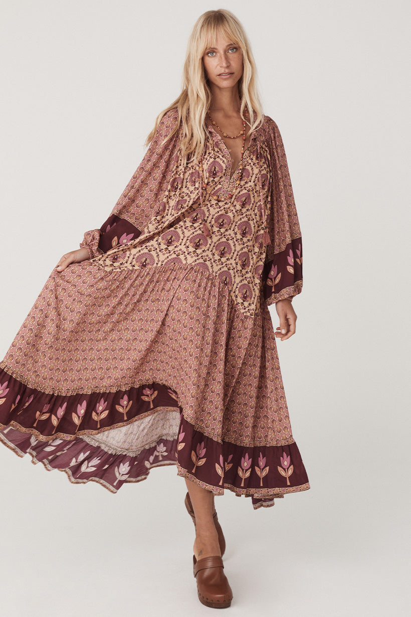Awaken your inner goddess in our newest Boho Gown with fine jewels and a tan mule for that dinner by candlelight at the Château.