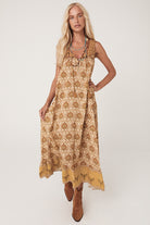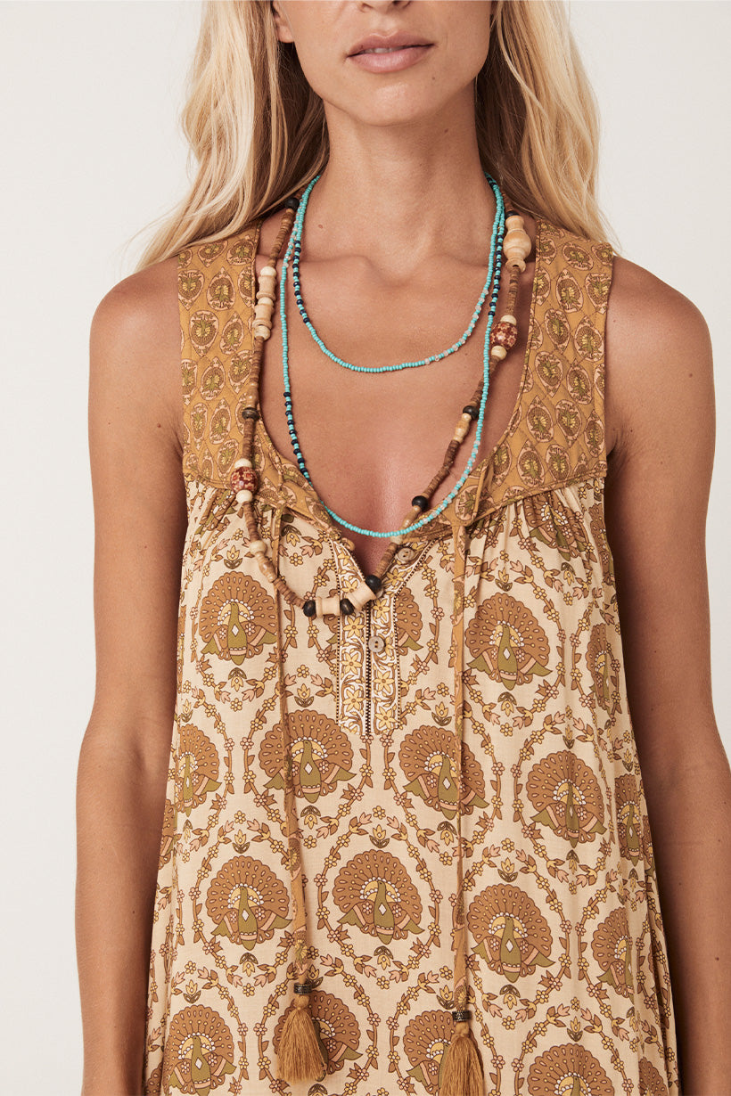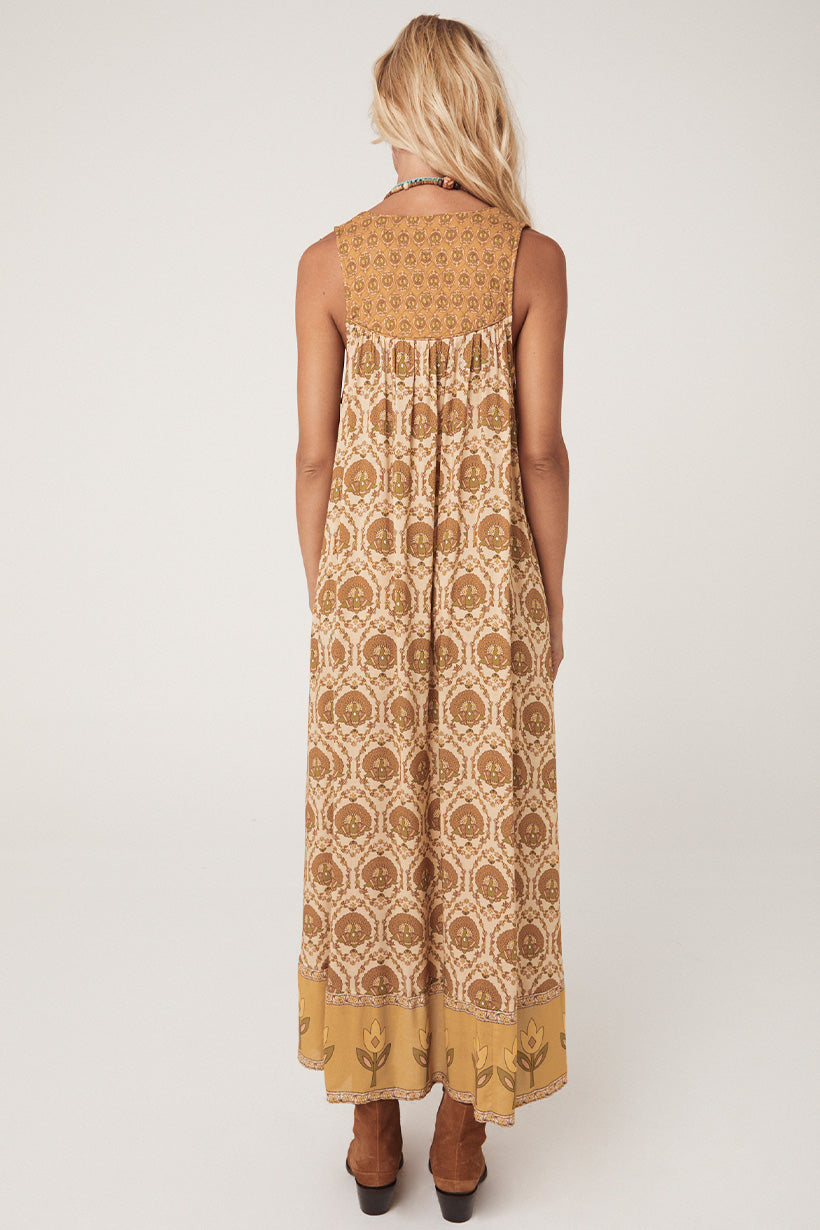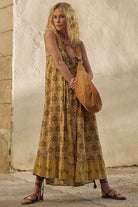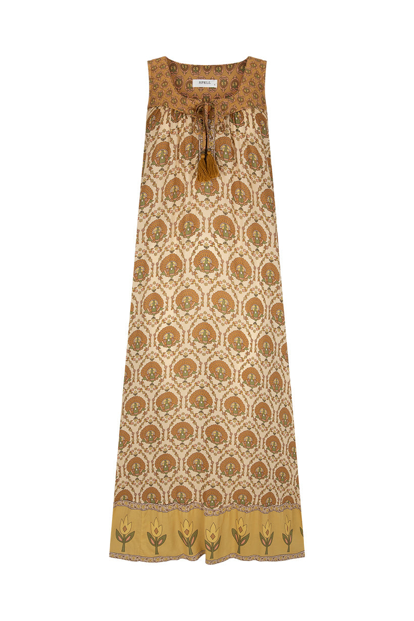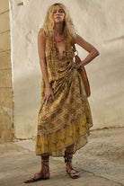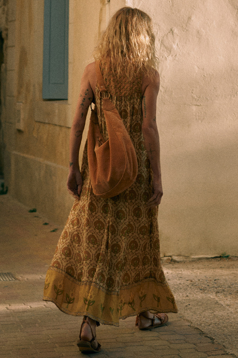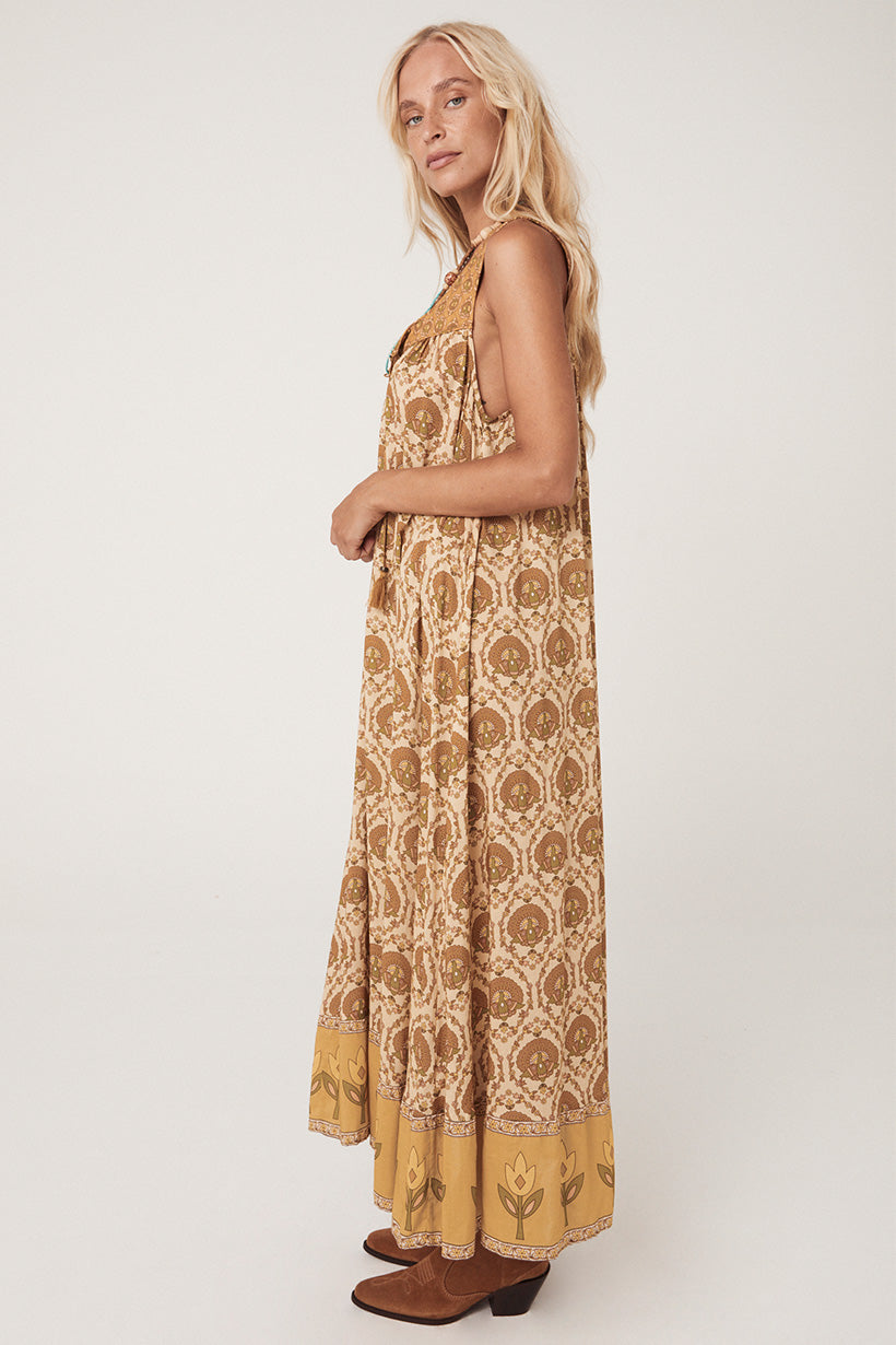 Cascading to the floor and embellishing the wearers every step with movement and bohemian charm, our Sundress is perfect for that sunset soiree ~ pair with a strappy sandal and gold bangles to complete the fit or with boots and a chunky belt at the waist for an edgier take.