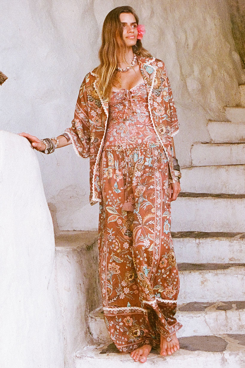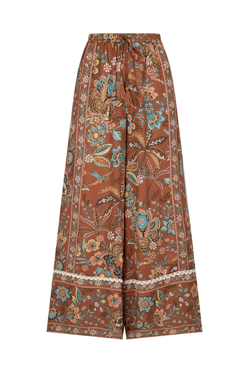 Elevate your look this season with the Mojave Lily Pant in Amber ~ an effortless blend of elegance and versatility perfect for any occasion. Crafted from luxuriously soft TENCEL™, our semi wide leg pants feel buttery soft with a subtle, silky texture, making them the ideal piece to transition from poolside lounging to evening wear. The elasticated waist is adorned with tassel ties and wooden beads, adding an artisanal touch, while the striking Batik-inspired print is expertly placed with vertical micro border panels for a flattering effect. Finished with intricate crochet details framing the hem, and of course, side pockets for convenience, these pants offer a sophisticated, sport-luxe feel. We recommend to pair with the Mojave Lily Shirt and sandals for languid days and balmy nights.