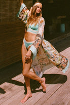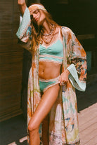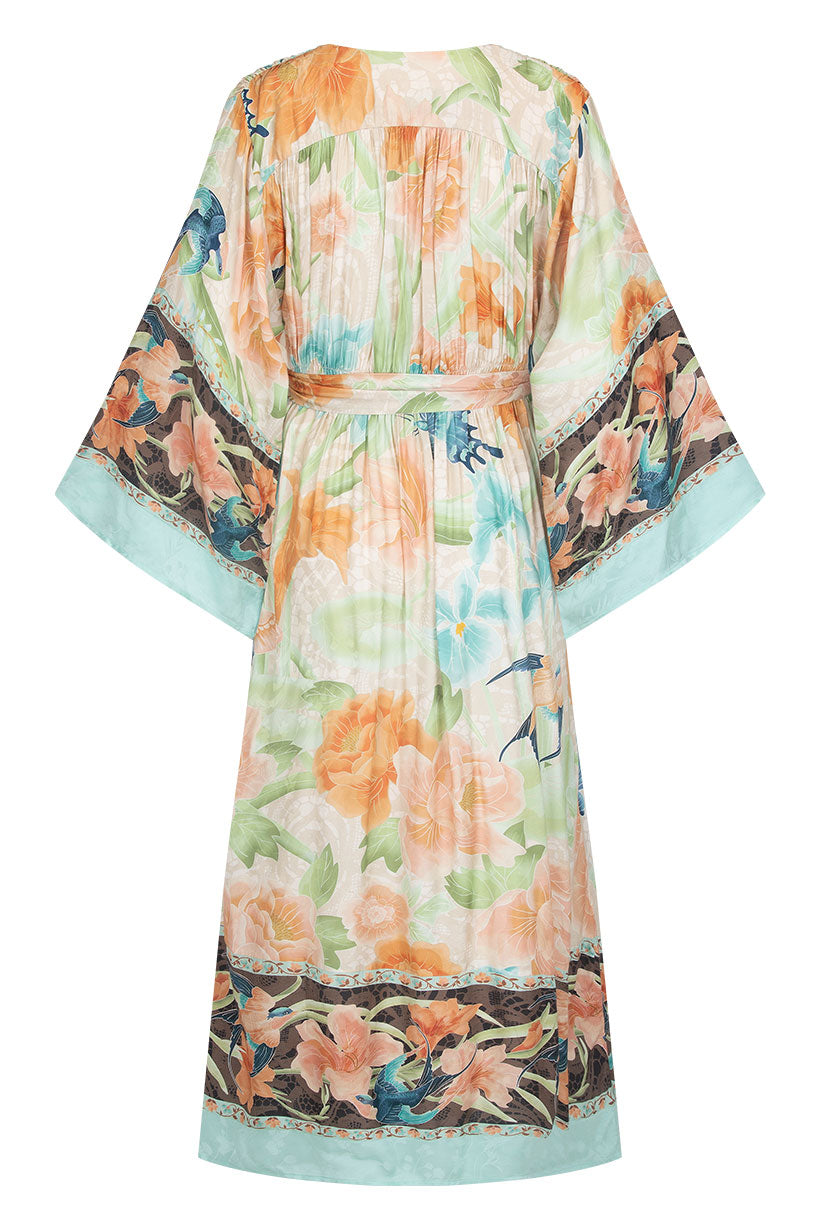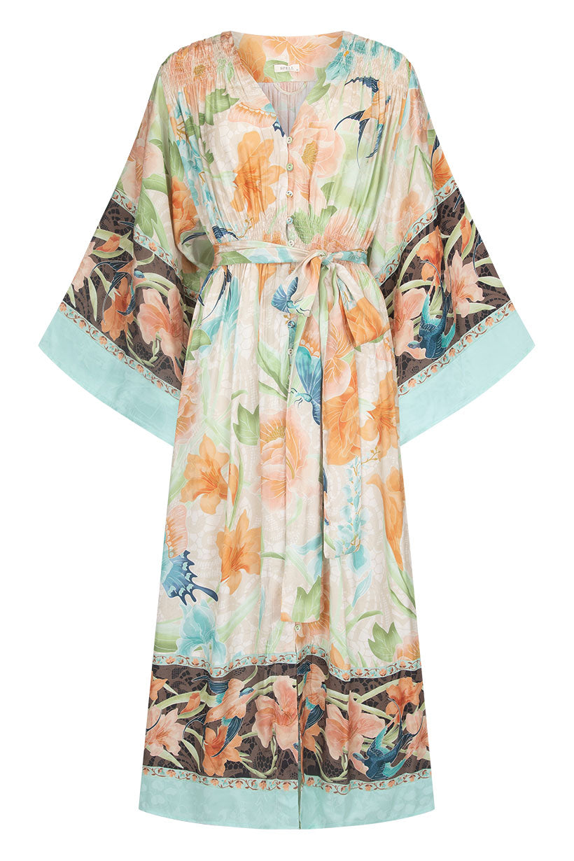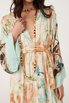 Our Painter’s Garden Gown in Seafoam evokes the romance of 1930’s vintage robes with silky, liquid like fabric, exquisite jacquard detailing and graceful watercolour florals and striking border details. With a silhouette that flows with every movement, this gown transforms languid mornings into unforgettable nights. Elevate the look with a slim heel and understated gold or pearl accessories for a glamorous, yet understated ensemble. Pair with boots and a lightweight cardigan for a more relaxed feel.