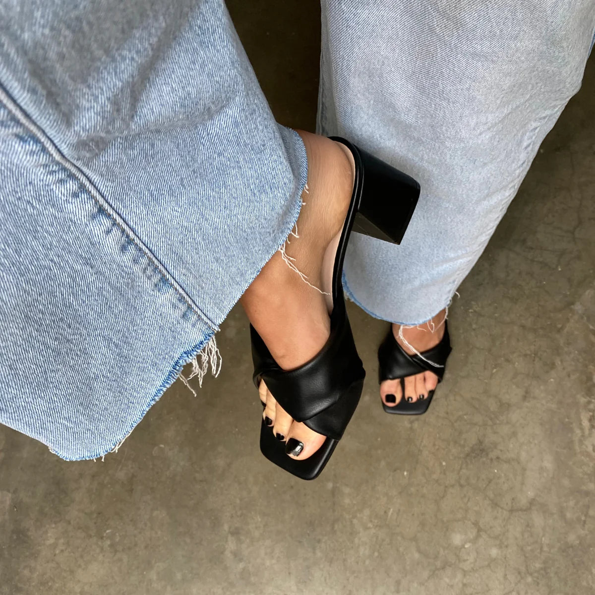 Verali's 'Stella' is an elegant twist on our classic mule. With padded twist detailing and a thick block heel, Stella is a staple for your day to night wardrobe.