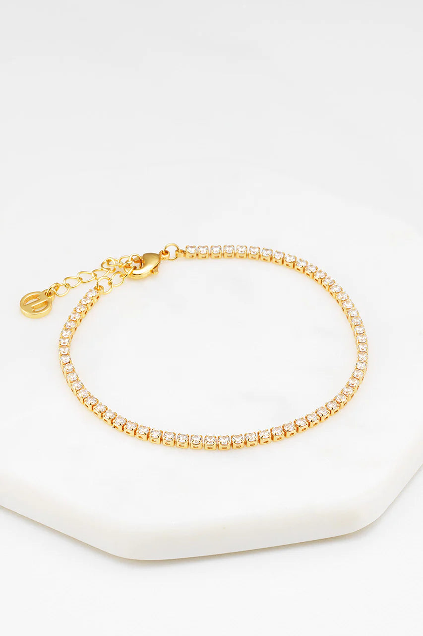The perfect choice for those seeking a luxe look without breaking the bank. This bracelet boasts a timeless design with a row of sparkling crystals, exuding elegance and sophistication. Crafted with attention to detail, the Isla Tennis Bracelet offers a high-quality finish that mimics the allure of fine jewelry. Whether for a special occasion or everyday wear, this bracelet effortlessly adds a touch of glamour to any ensemble.