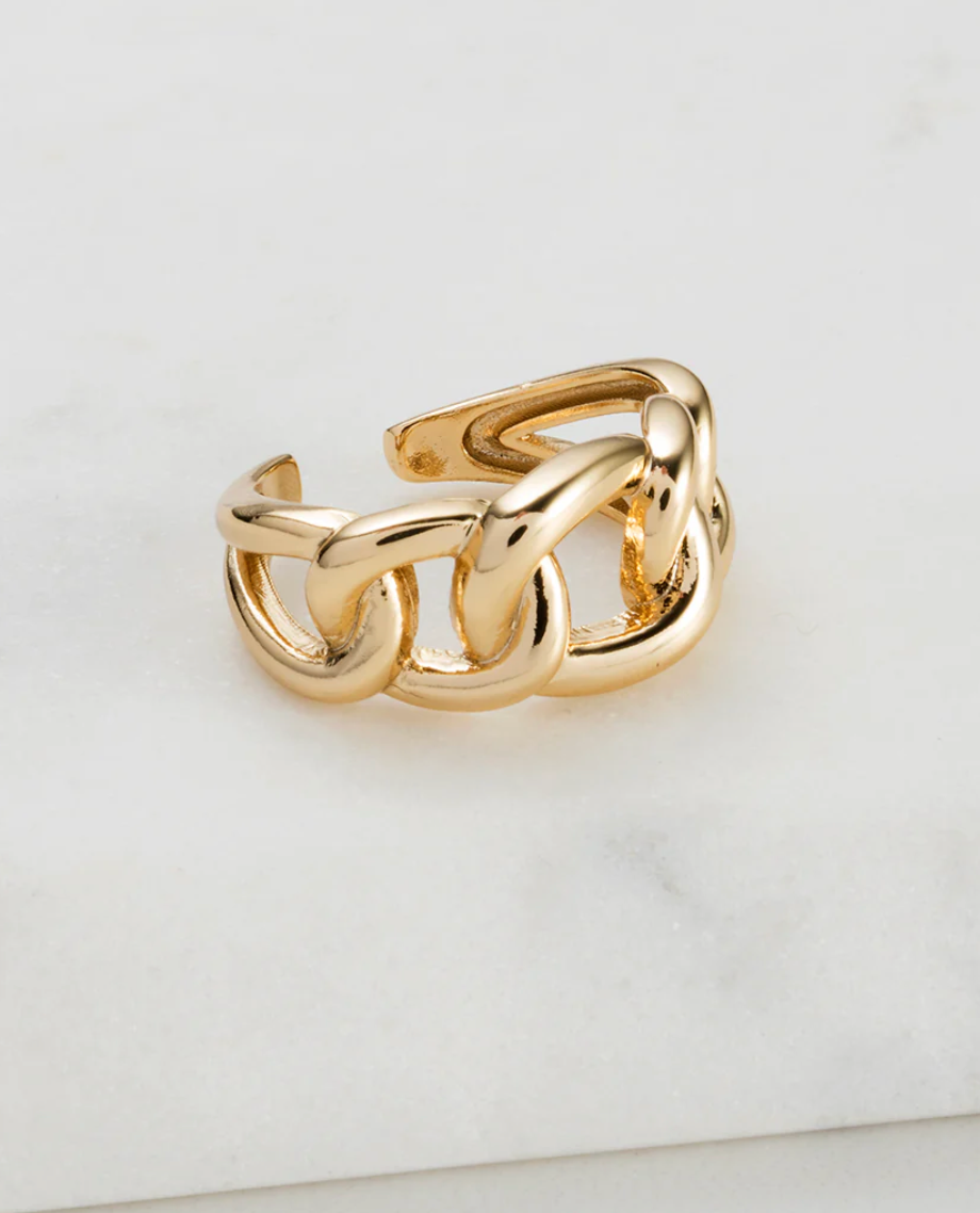 This collection of rings and chains tie in beautifully with our new collection of gold earrings. These rings fit between a size 7-8. Very high standard of workmanship and being 18k gold they wear really well.